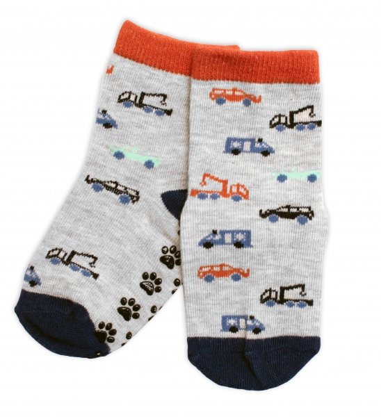 Dětské ponožky s ABS Auta - šedé - 19-22