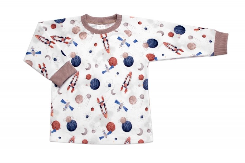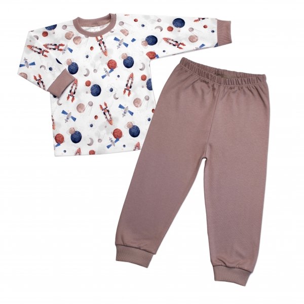 Dětské pyžamo 2D sada, triko + kalhoty, Cosmos, Mrofi, béžová/bílá - 86 (12-18m)