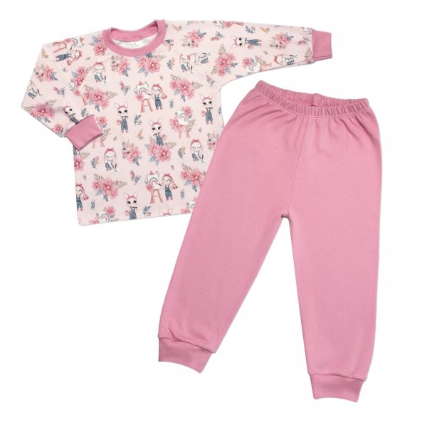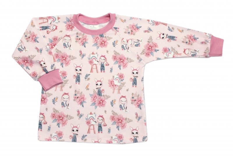 Dětské pyžamo 2D sada, triko + kalhoty, Rabbit Painter, Mrofi, pudrově růžová - 86 (12-18m)