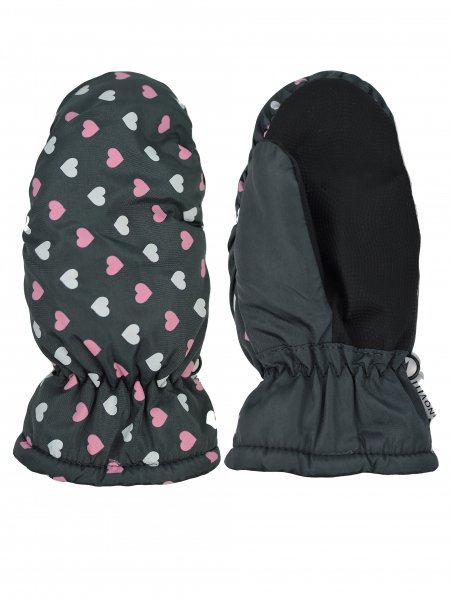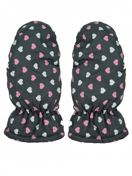 Dětské zimní, nepromokavé palčáky, Srdíčka, grafit, vel. 110/116 - 110-116 (4-6r)