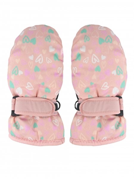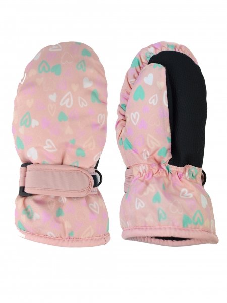 Dětské zimní, nepromokavé palčáky, Srdíčka, světle růžové, vel. 98/104 - 98-104 (2-4r)