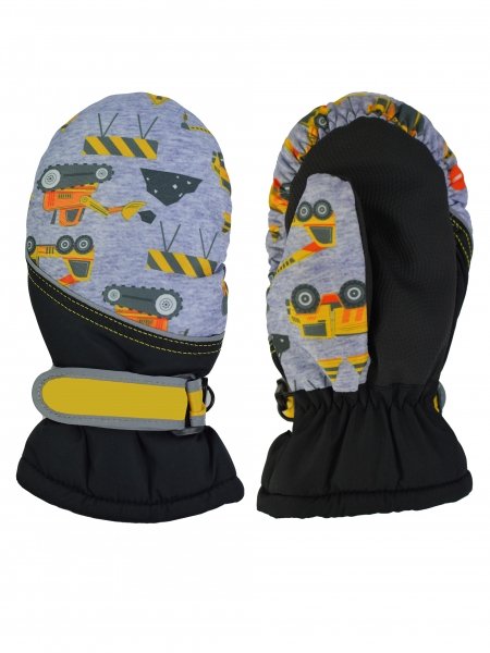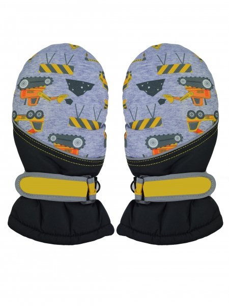 Dětské zimní, nepromokavé palčáky, Stroje, světle šedé, vel. 104/110 - 104-110 (3-5r)