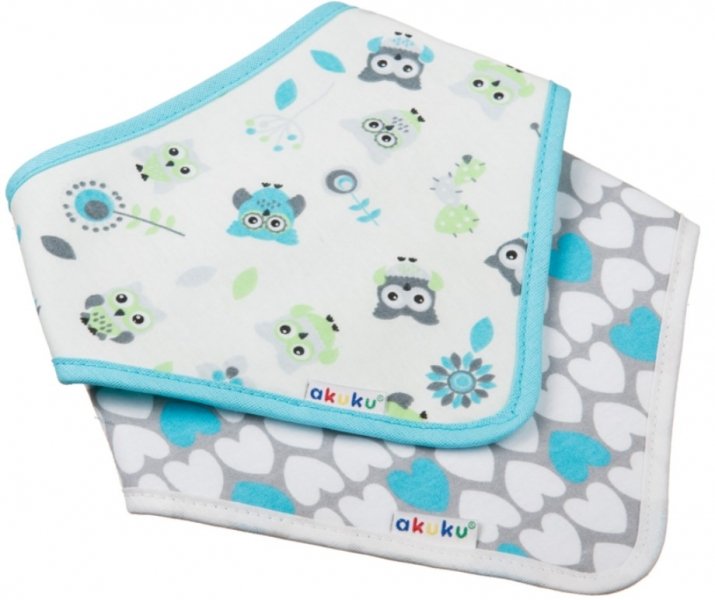 Dětský bryndáček/šátek Akuku - Sovičky, tyrkys, bílá - 2 ks