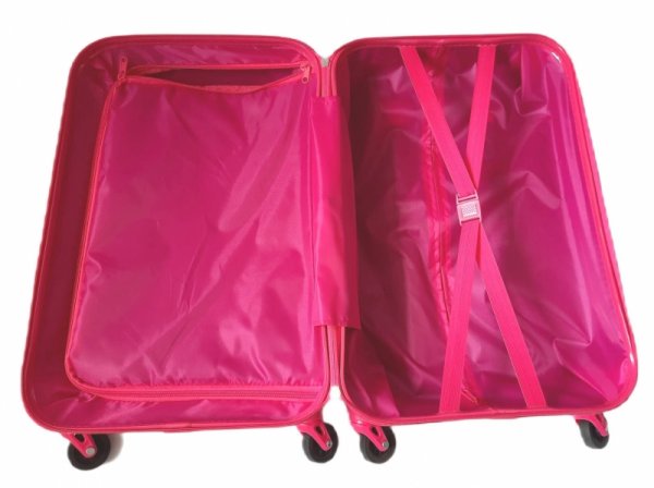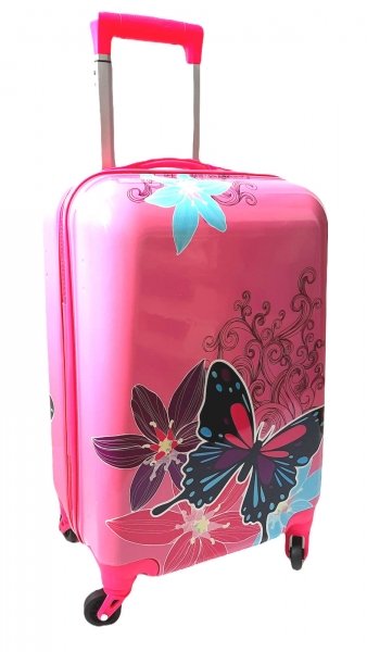 Dětský cestovní kufr na kolečkách pro nejmenší cestovatele. Perfektní pro všechny typy výletů, prázdninové výlety, školní nebo předškolní výlety. Ideální do letadla - jako příruční zavazadlo. Kufr je vyroben z ABS plastu, polykarbonátu odolného proti poškození, má ochrannou fólii, která jej chrání před poškozením. Součástí kufru je výsuvná teleskopická rukojeť, čtyři kolečka odolná proti zatížení, uzavíratelný standartními zipy. Vnitřek kufru je podšitý podšívkou s bezpečnostními popruhy.