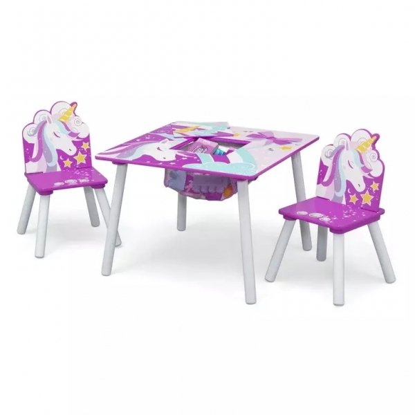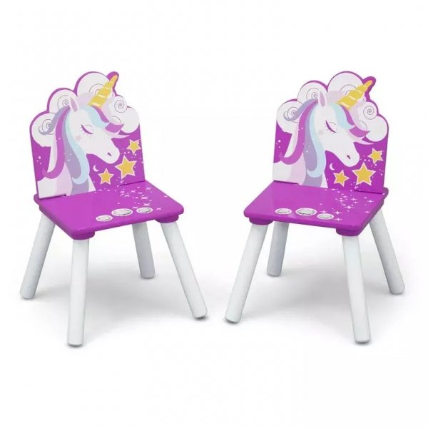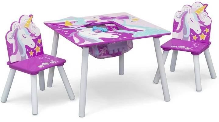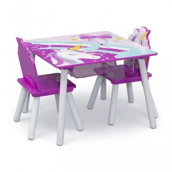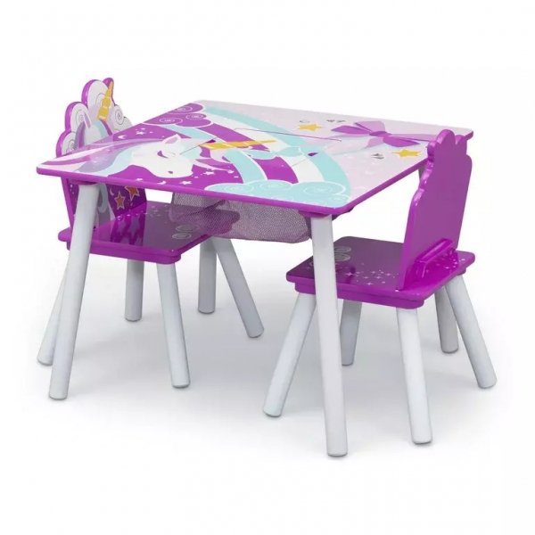 Originální design dětského stolu s židlemi v bílém provedení s motivem jednorožce. Stoleček je ideálním místem pro hraní, malování, občerstvení nebo pro posezení s kamarády. Originální doplněk do dětského pokoje, praktický, přizpůsobený dětským potřebám. Nábytek je stabilní, snadno se čistí.