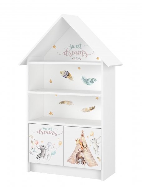 Dřevěná knihovna/skříň na hračky Baby Boo Domeček, Sweet Dreams - bílá
