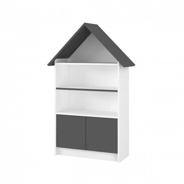Dřevěná knihovna/skříň na hračky Nellys Domeček, bílá/antracit