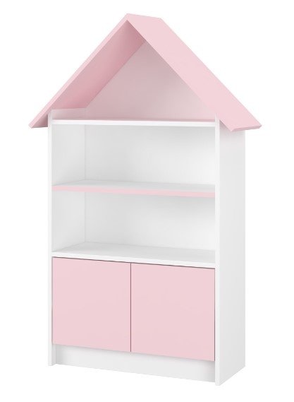 Dřevěná knihovna/skříň na hračky Nellys Domeček, bílá/růžová