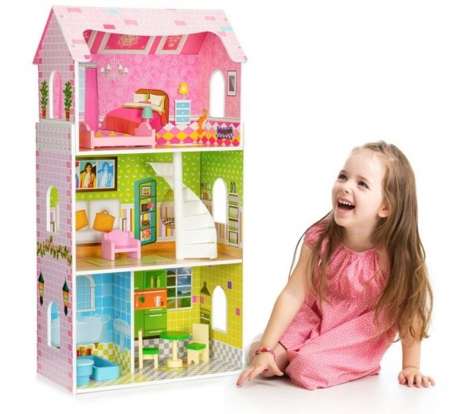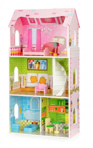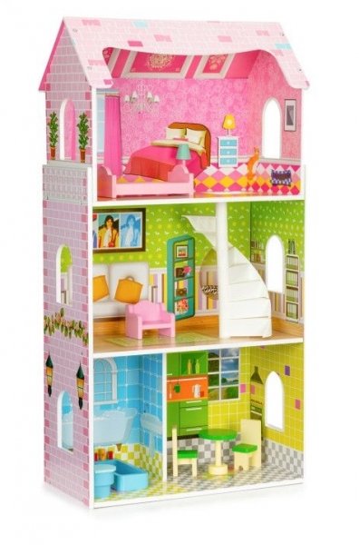 Celý domeček je vyroben z vysoce kvalitního dřeva, které neobsahuje žádné ostré a nebezpečné hrany. Celý dům má 3 nezávislé úrovně s celkem 5 pokoji - vše dokonale napodobuje skutečný obytný dům.