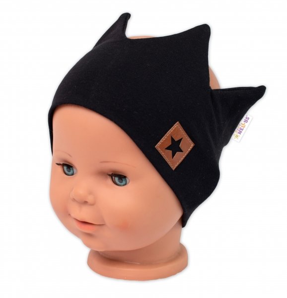Dvouvrstvá čelenka, Baby Nellys Hand Made, bavlna, Korunka STAR - černá