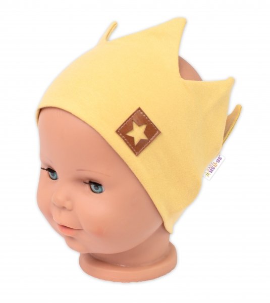Dvouvrstvá čelenka, Baby Nellys Hand Made, bavlna, Korunka STAR - hořčicová