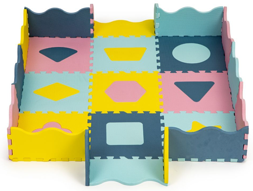 ECO TOYS Dětské pěnové puzzle 121,5x121,5cm, hrací deka, podložka na zem Tvary, 37 dílů