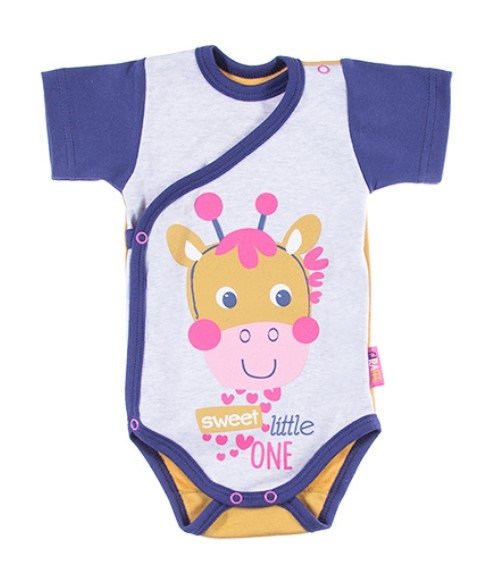 EEVI Kojenecké body kr. rukáv, zapínání bokem Africa - Žirafka, růžová - 50 (0-1m)