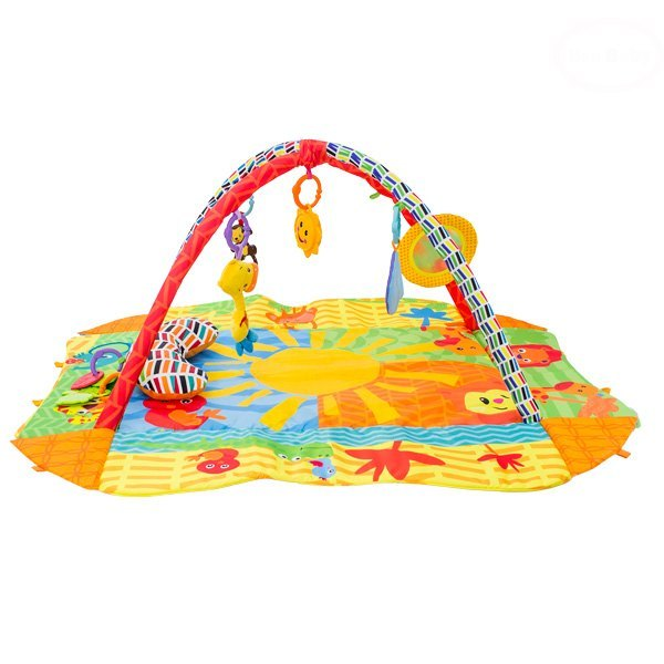 Než položíte dítě na hrací deku, řádně smontujte všechny její díly.