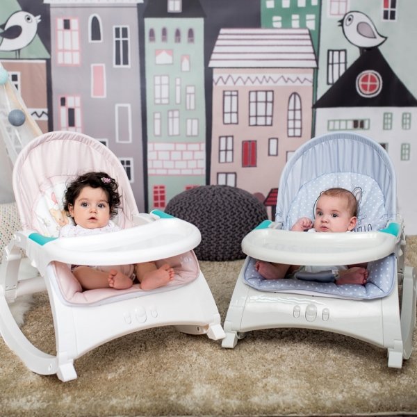 *Houpací lehátko s funkcemi 3 v 1 – lehátko, židle a židle se stolkem