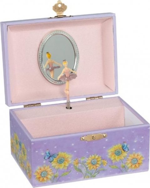 Po otevření skříňky začne hrát jemná melodie z opery Labutí jezero a malá baletka se roztančí před svým zrcadlem