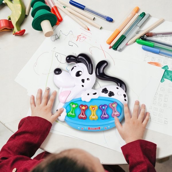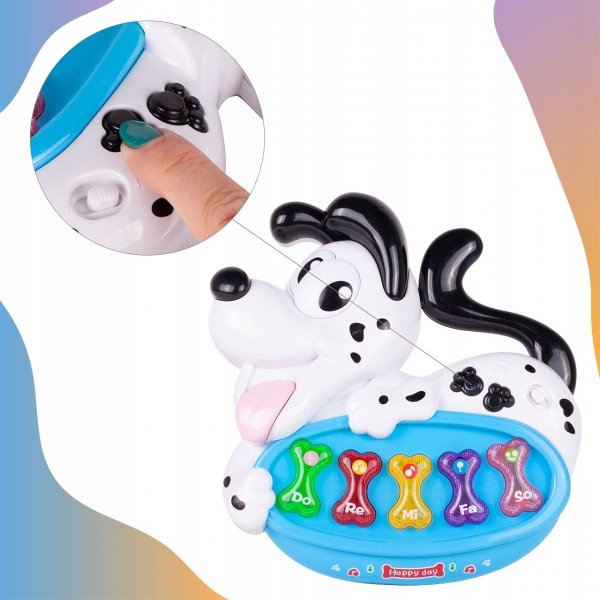 Piano je ve tvaru roztomilého kresleného pejska, baleno v krabici, takže je ideální jako dárek.