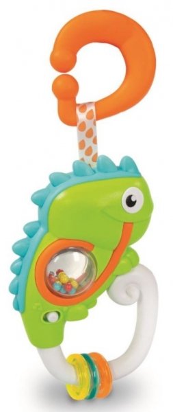 Zábavné chrastítko ve tvaru chameleona, které zabaví miminko. Chrastítko při zatřesení vydává zábavné melodie a zvuky, zatímco barevné kuličky a kouzla přitahují pozornost dítěte a stimulují jeho hmatové vnímání.