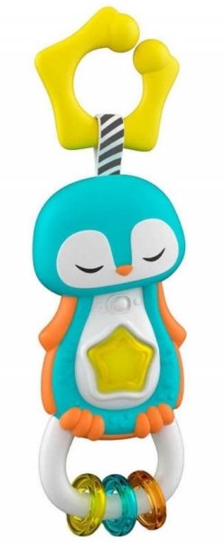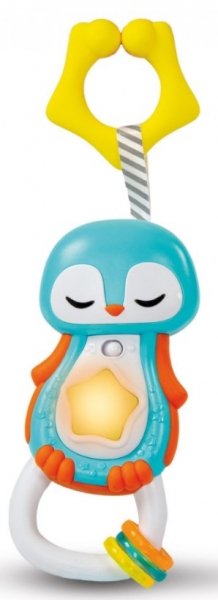 Rozkošné chrastítko ve tvaru tučňáka, které je dokonalým společníkem miminka při relaxaci v prvních měsících jeho života. Svítící tlačítko ve tvaru hvězdy se rozsvítí, aby přitáhlo pozornost dítěte, zatímco je uklidňují různé relaxační zvuky.