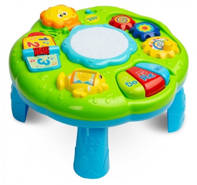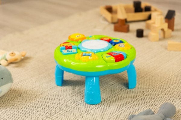 Výukový hudební stůl ZOO od TOYZ je elektronická novinka pro nejmenší. Stolek je vybaven reproduktorem, který hraje různé melodie v závislosti na prvku hračky, se kterou si dítě hraje.