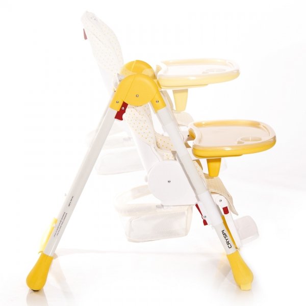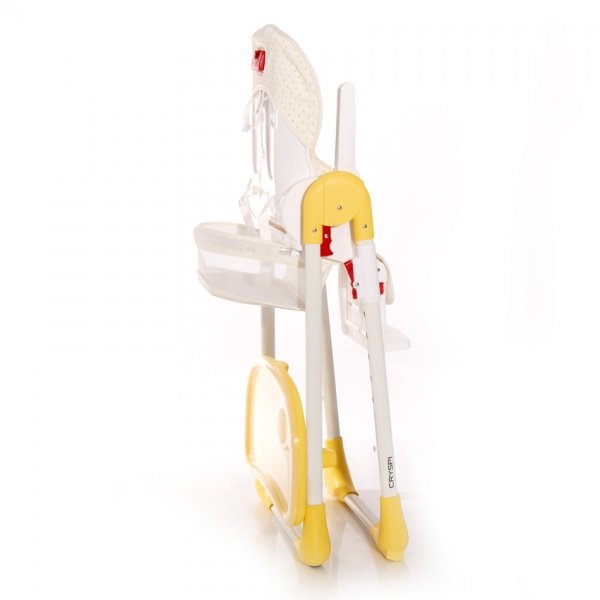 Jídelní židlička Lorelli CRYSPI je praktickým řešením, pokud chcete svému dítěti poskytnout během krmení maximální pohodlí. Pohodlí zajišťuje individuální nastavení výšky a úhlu sklonu polstrovaného opěradla i sedáku. Můžete tak dítě položit, pokud po jídle v sedačce usne. Vysoká židle CRYSPI je vybavena pětibodovým bezpečnostním pásem a odnímatelným chráničem třísel eliminujícími riziko vypadnutí dítěte. Dále jsou součástí židličky nastavitelná opěrka nohou a deska stolku s otvorem na lahev nebo šálek, která se dá vyjmout pro snazší čištění. Stolek se dá posouvat vpřed a vzad podle potřeby. Dalším doplňkem je odnímatelný koš na hračky v zadní části. Židlička se dá snadno složit pro lepší skladnost. Přední nohy mají protiskluzový povrch a na zadních jsou zabudována kolečka pro snazší manipulaci.