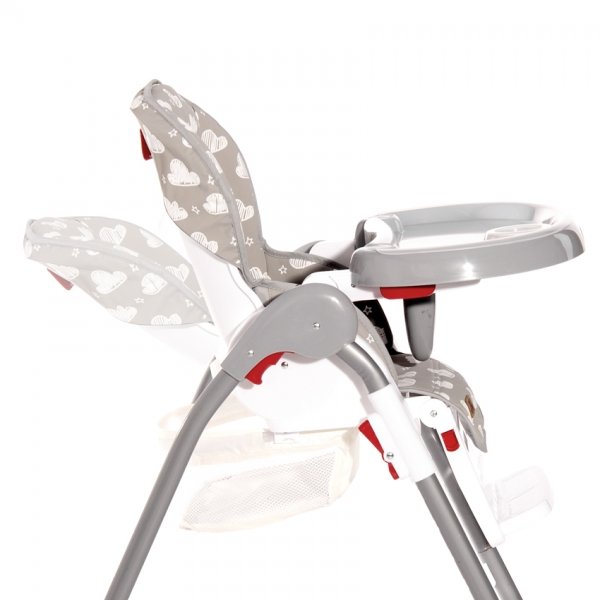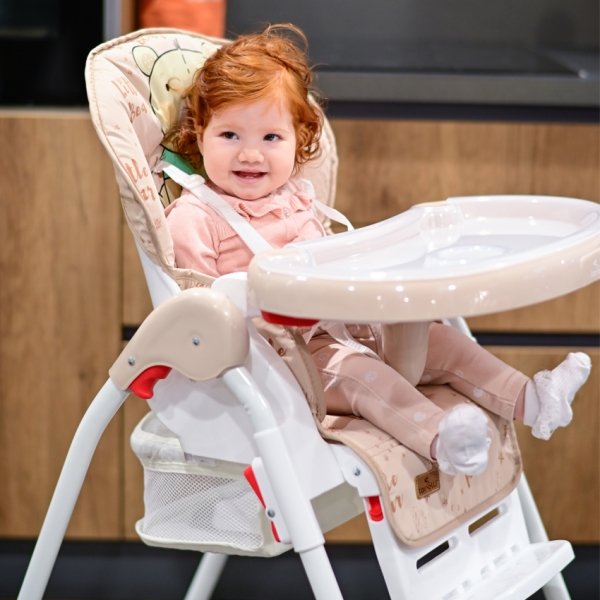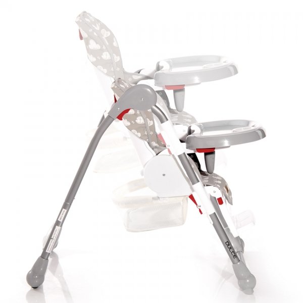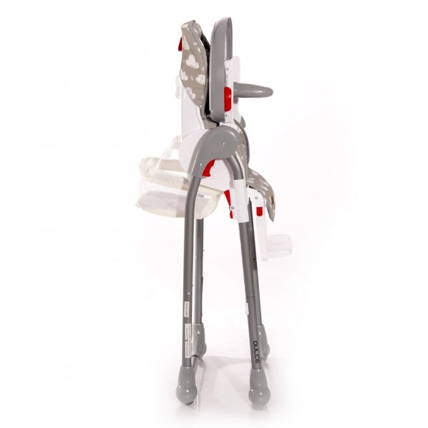 Jídelní židlička Lorelli DULCE s jednoduchým skládacím mechanismem je praktickým řešením pro rodiče, kteří chtějí zajistit svému dítěti při jídle co největší pohodlí. Vysoká židle DULCE je dostupná v atraktivním designovém řešení s řadou zábavných potisků. Pod měkkým povrchem se skrývá tvrdý a stabilní rám, který podporuje správné držení těla. Jídelní židle je vybavena pětibodovým bezpečnostním pásem. Sedačku lze nastavit do 5 výškových poloh a do 3 poloh sklonu - můžete tak dítě uložit ke spánku přímo v sedačce. Stupačku na nohy lze výškově nastavit do 3 poloh a sklopit do 2. Stolek je možno zafixovat v 6 výškových pozicích a jeho vrchní deska slouží jako podnos s otvorem na šálek či láhev a lze vyjmout pro snazší omývání. Měkké polstrování z hypoalergenního materiálu se snadno odnímá a čistí. Pod sedadlem se nachází prostorný odnímatelný košík na hračky a další drobnosti. Gumové protiskluzové podložky na předních nohách udržují vysokou židli bezpečně na svém místě, i když se dítě během krmení vrtí. Kolečka na zadních nohách umožňují židlí bez námahy pohybovat bez poškrábání povrchu podlahy. Židličku lze snadno složit do kompaktní velikosti a snadno se tak vejde třeba do kufru automobilu.