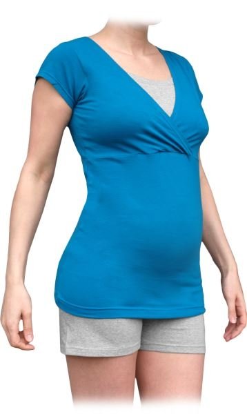 JOŽÁNEK Těhotenské, kojící pyžamo, krátké - tm.tyrkys/šedý