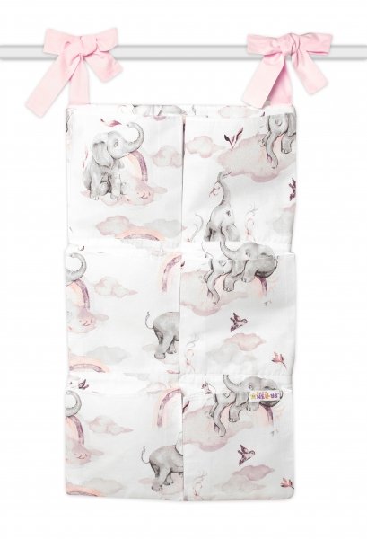 Kapsář na postýlku 6 kapes Baby Nellys, Slon a duha, růžový