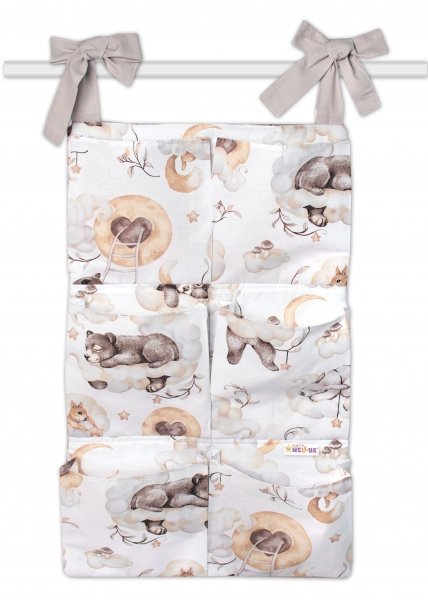 Kapsář na postýlku 6 kapes Baby Nellys, Zvířátka na mráčku, béžový