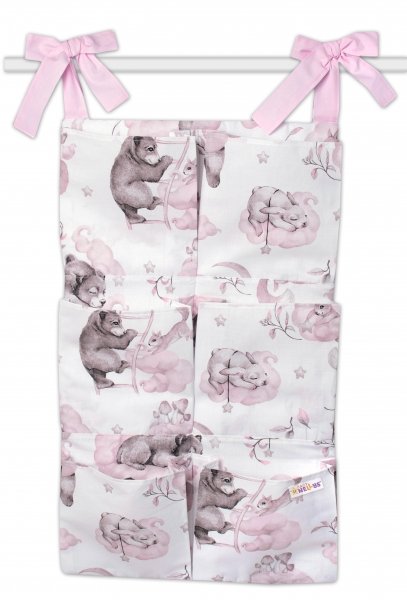 Kapsář na postýlku 6 kapes Baby Nellys, Zvířátka na mráčku, růžový