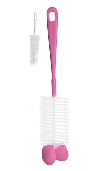 Kartáč na láhve a dudlíky s houbičkou BabyOno, růžový