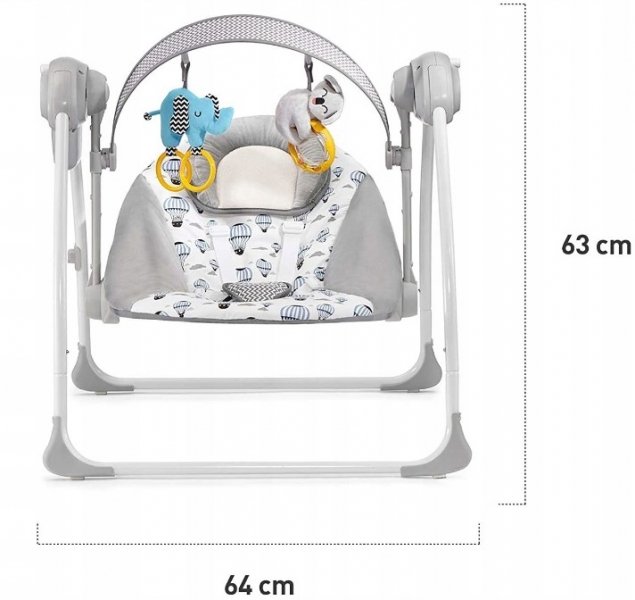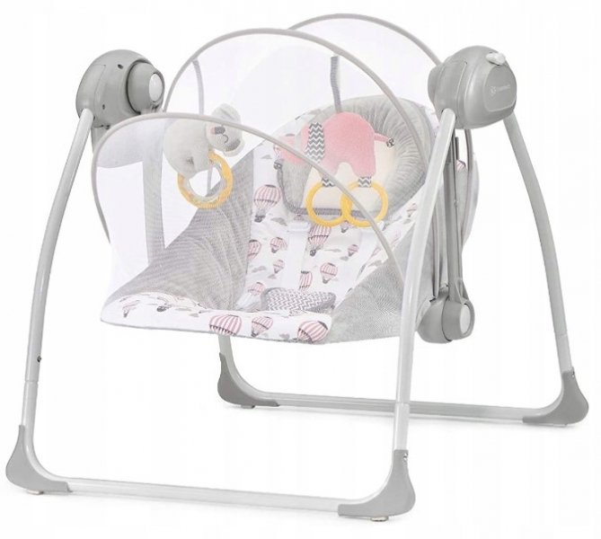 Houpátko s hračkami a moskytiérou. Automatické houpání, stačí stisknout tlačítko a nastavit úroveň houpání. Díky SMART CLOCK si můžete nastavit i dobu houpání (10, 20 nebo 30 minut). Uklidňující melodie různých typů, včetně několika přírodních zvuků, které mají na miminko obzvláště uklidňující účinek.
