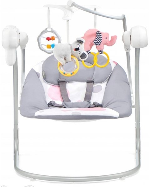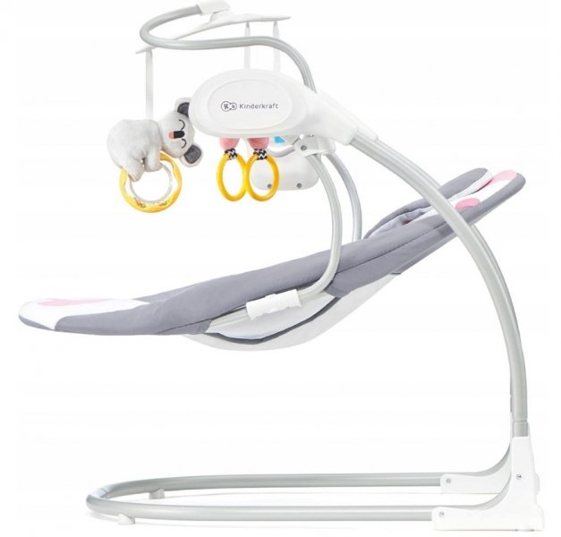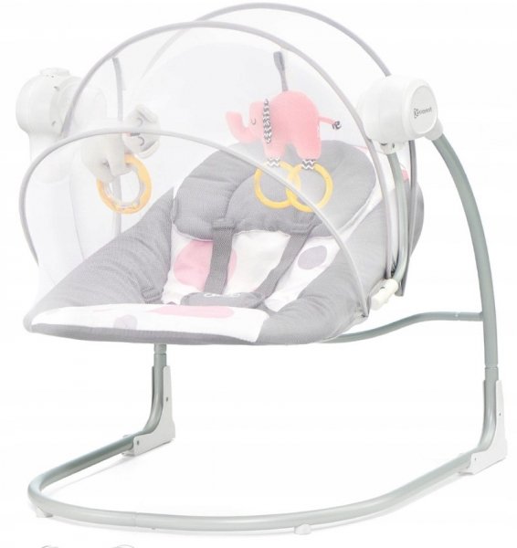 Houpátko s hračkami a moskytiérou. Automatické houpání, stačí stisknout tlačítko a nastavit úroveň houpání. Díky SMART CLOCK si můžete nastavit i dobu houpání (10, 20 nebo 30 minut). Uklidňující melodie různých typů, včetně několika přírodních zvuků, které mají na miminko obzvláště uklidňující účinek.