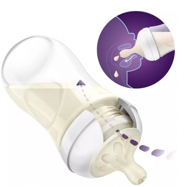 Používáním kojeneckých lahví AVENT s unikátní patentovanou silikonovou savičkou s ventilkem předchází polykání vzduchu během krmení a snižuje pravděpodobnost vzniku novorozenecké koliky.