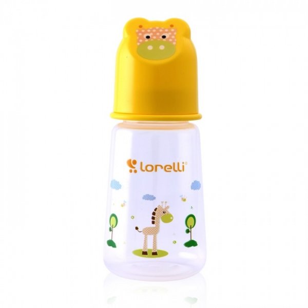 Kojenecká lahvička Lorelli 125 ml s víkem ve tvaru zvířete YELLOW