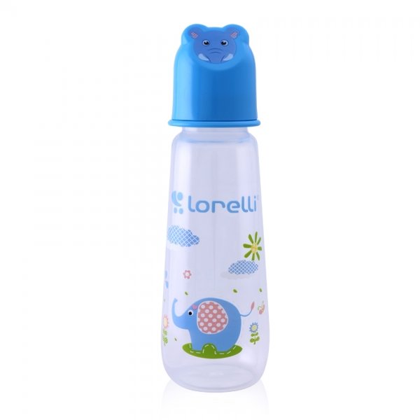 Kojenecká lahvička Lorelli 250 ml s víkem ve tvaru zvířete BLUE