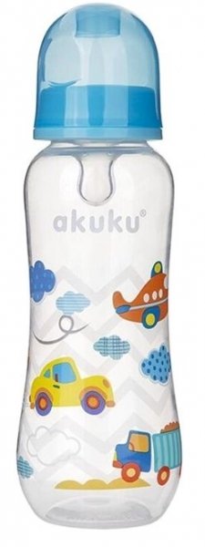 Kojenecká, plastová lahvička Akuku, Autíčka, 250 ml - modrá