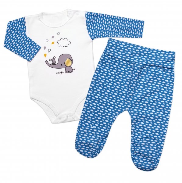 Kojenecké body zap. u krku + polodupačky, CLOUD, 2D sada, Mrofi, modrá - 68 (3-6m)