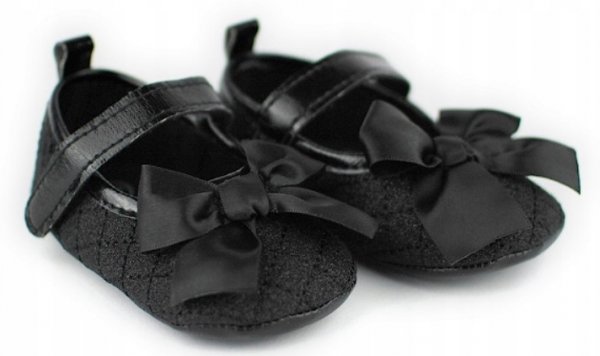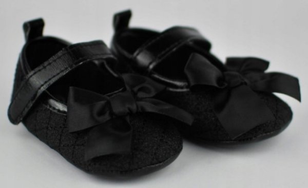 Kojenecké capáčky/botičky s mašličkou, brokát/černé, Baby
