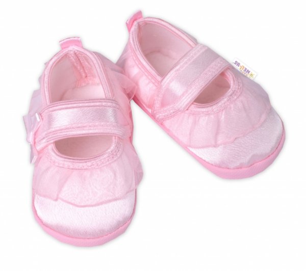 Kojenecké capáčky/botičky saténové s volánkem, Baby Nellys