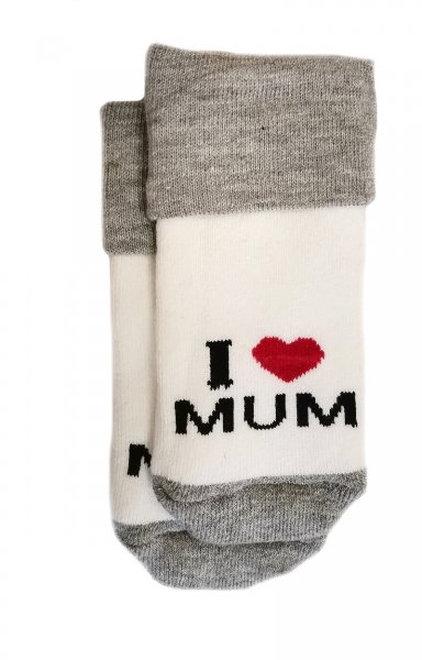 Kojenecké froté bavlněné ponožky I Love Mum, bílo/šedé 80/86 - 80-86 (12-18m)