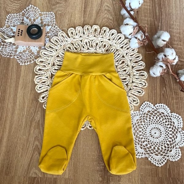 Polodupačky jsou vyrobené z atestované kvalitní česané bavlny, 100% organická bavlna. Široký pás miminko netlačí na bříšku - pohodlné.