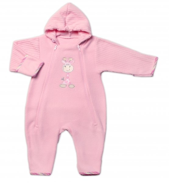 Kojenecký overálek s kapucí polar Žirafa, růžový - 80 (9-12m)