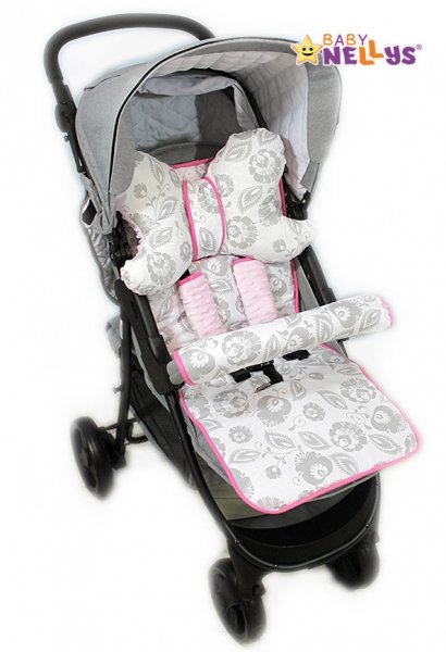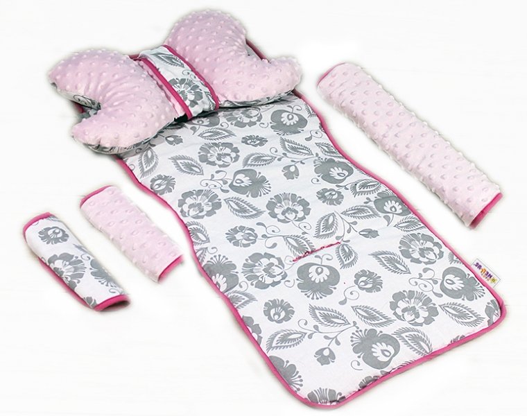 Komplet do kočárku - podložka, polštářek, potah na popruhy a barieru č. 7, D19