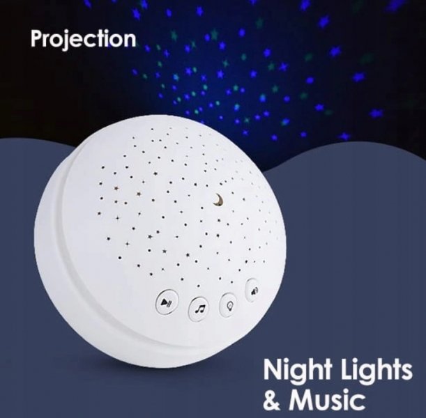 Projektor vyzařuje modro-zeleno-oranžové barvy. Režim projektoru lze nastavit na jasné světlo, méně světla nebo proměnlivé světlo, čímž vaše dítě udrží zájem o měnící se prostředí.