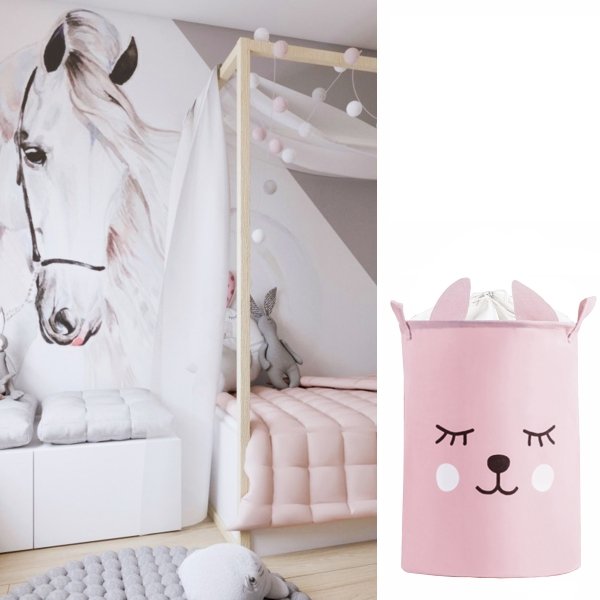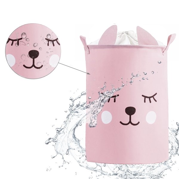 Koš na hračky, uzavíratelný, Tulimi, bavlna, Bear - růžový, 43 L