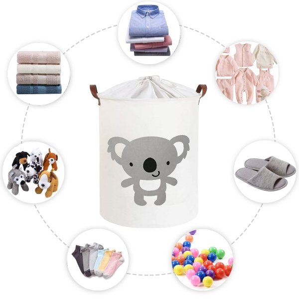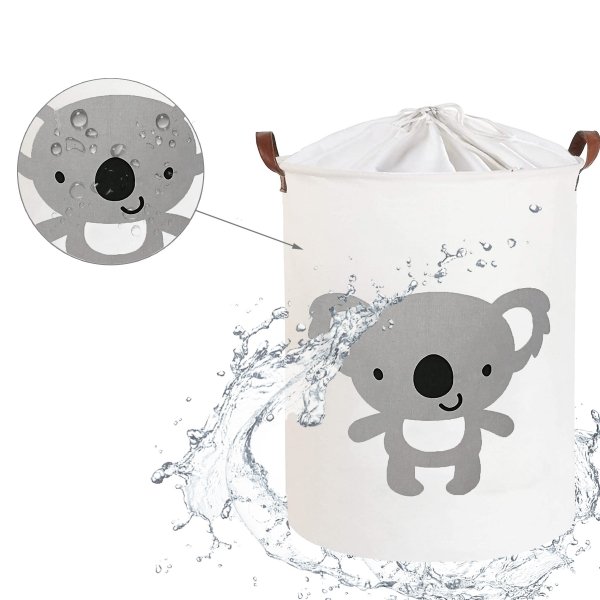 Koš na hračky, uzavíratelný, Tulimi, bavlna, Koala - bílý, 43 L