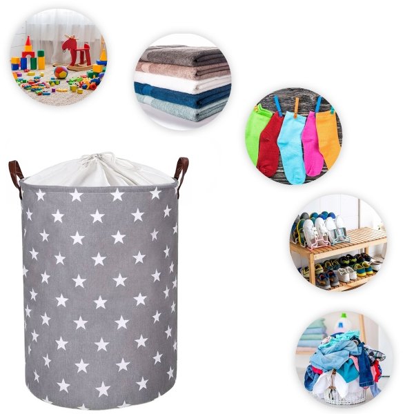 Bavlněný koš na hračky na doma i na cesty pro všechny hračky a jiné poklady. Jejich válcový tvar ušetří spoustu místa a velký objem vám umožní naplnit spoustu hraček. Funkce skládání vám umožní rychle složit košík, když již není potřeba, a uložit jej, dokud jej nebudete potřebovat znovu použít.