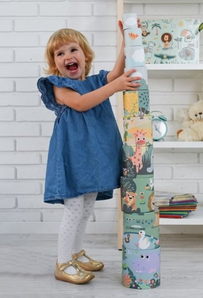 Skládanka pyramida je vynikající hračka, která vám umožní procvičit motorickou koordinaci a obratnost. Pyramida s kelímky je dalším návrhem ze série Safari. Sada se skládá z 10 kelímků s motivem džungle.