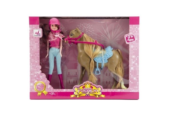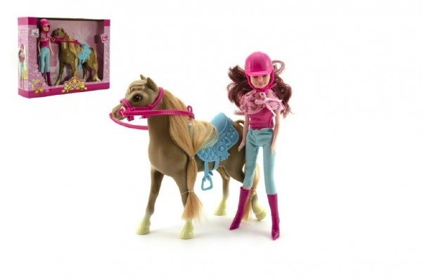 Kůň + panenka žokejka plast v krabici 34x27x7cm.
